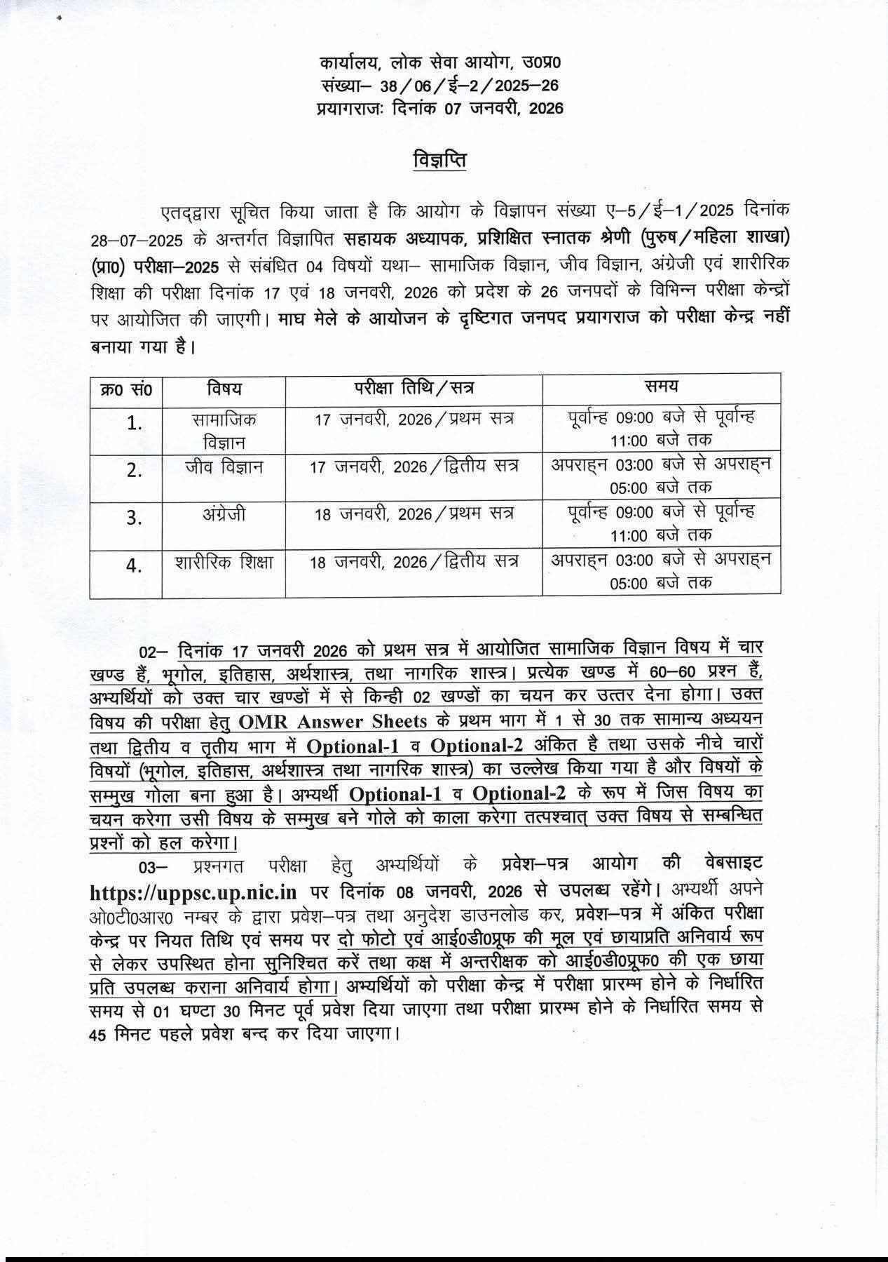 यह परीक्षा 17 व 18 जनवरी 2026 को आयोजित होगी।