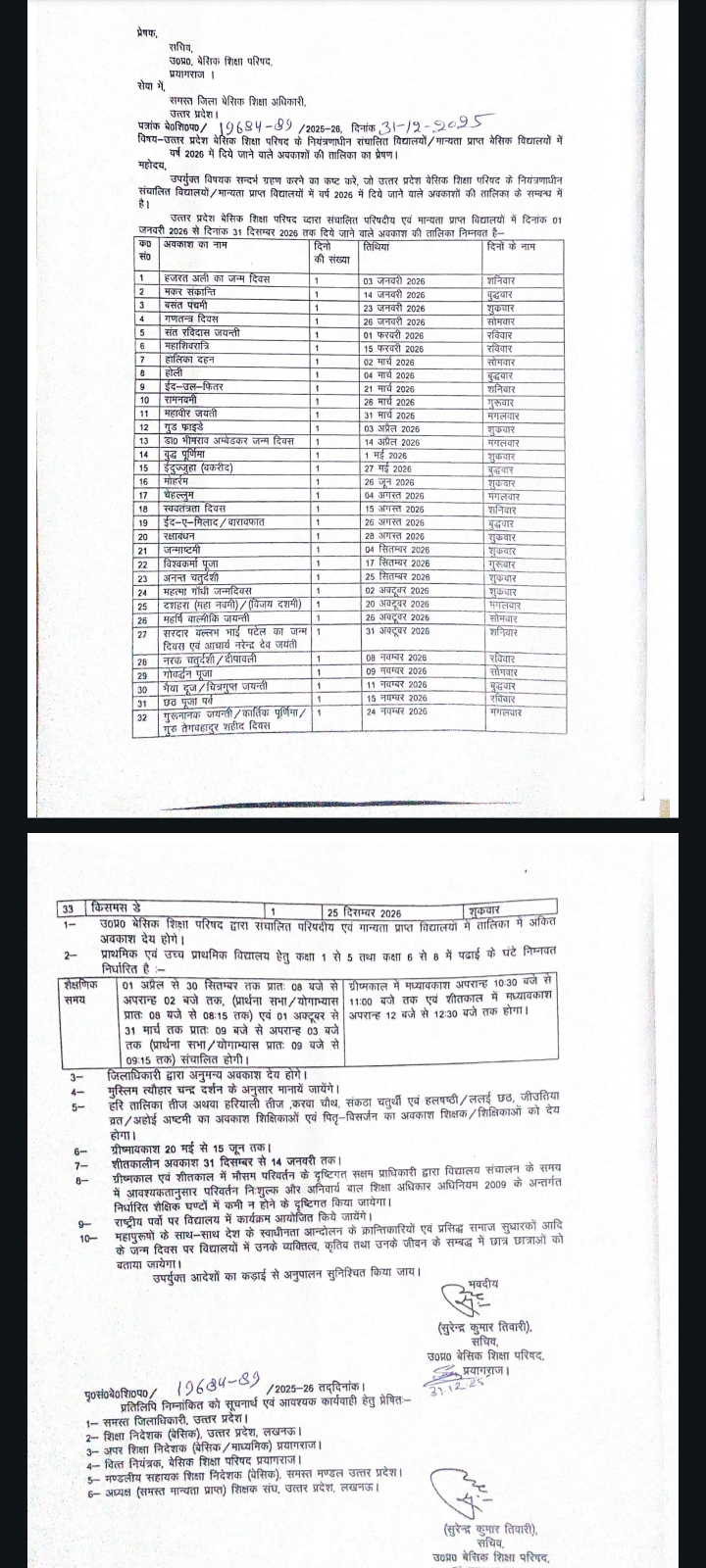 अंतः जनपदीय स्थानांतरण और समायोजन के सम्बंध में सचिव बेसिक शिक्षा परिषद का आदेश