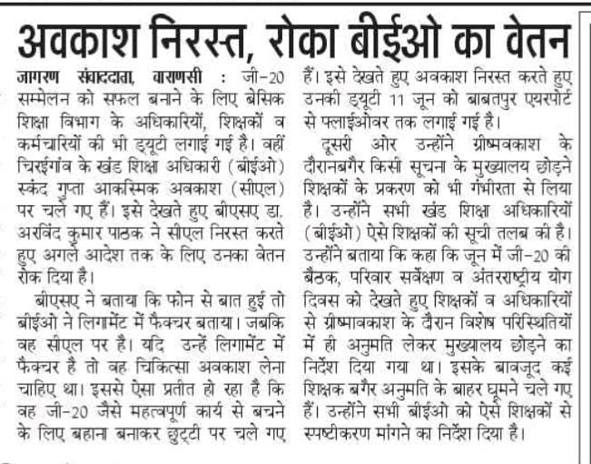 यदि बीमार थे तो BEO को मेडिकल लेना चाहिए था, CL क्यों लिया? इस आधार पर BEO का रुका वेतन...